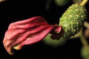 It is not just insects that cause galls, though. Fungi and bacteria can also do similar work. The alder tongue gall is caused by a fungus that creates an elongated ‘tongue’, which grows from the alder catkin and assumes a scarlet hue, shrivelling to an ugly, dark relic that persists over winter. It was once unknown in the UK but it has become more common, spreading its spores far and wide on the wind.