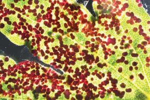 Field Maple Galls shot against the light. Each of these galls comes from an individual mite that lived in it.