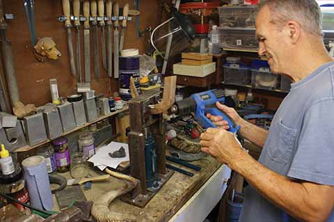 Brian heats the bulked horn so that he can work on it, about an inch at a time. It’s painstaking, time-consuming work – too cool and the horn won’t respond, too hot and it becomes brittle and cracks.
