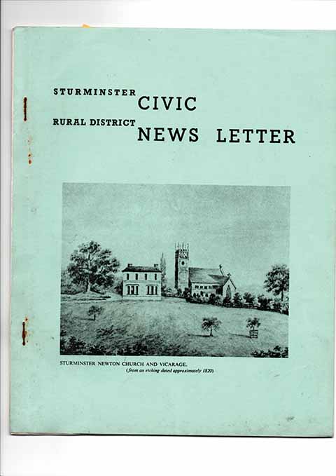 The News Letter featured stories on various parish churches around the district, contributions by or about long-serving councillors, written discussions about proposals for local government re-organisation and brief news items on events ranging from repairs to the ancient stone cross at Stalbridge to plans for the opening of Sturminster’s new Secondary Modern School in Bath Road.